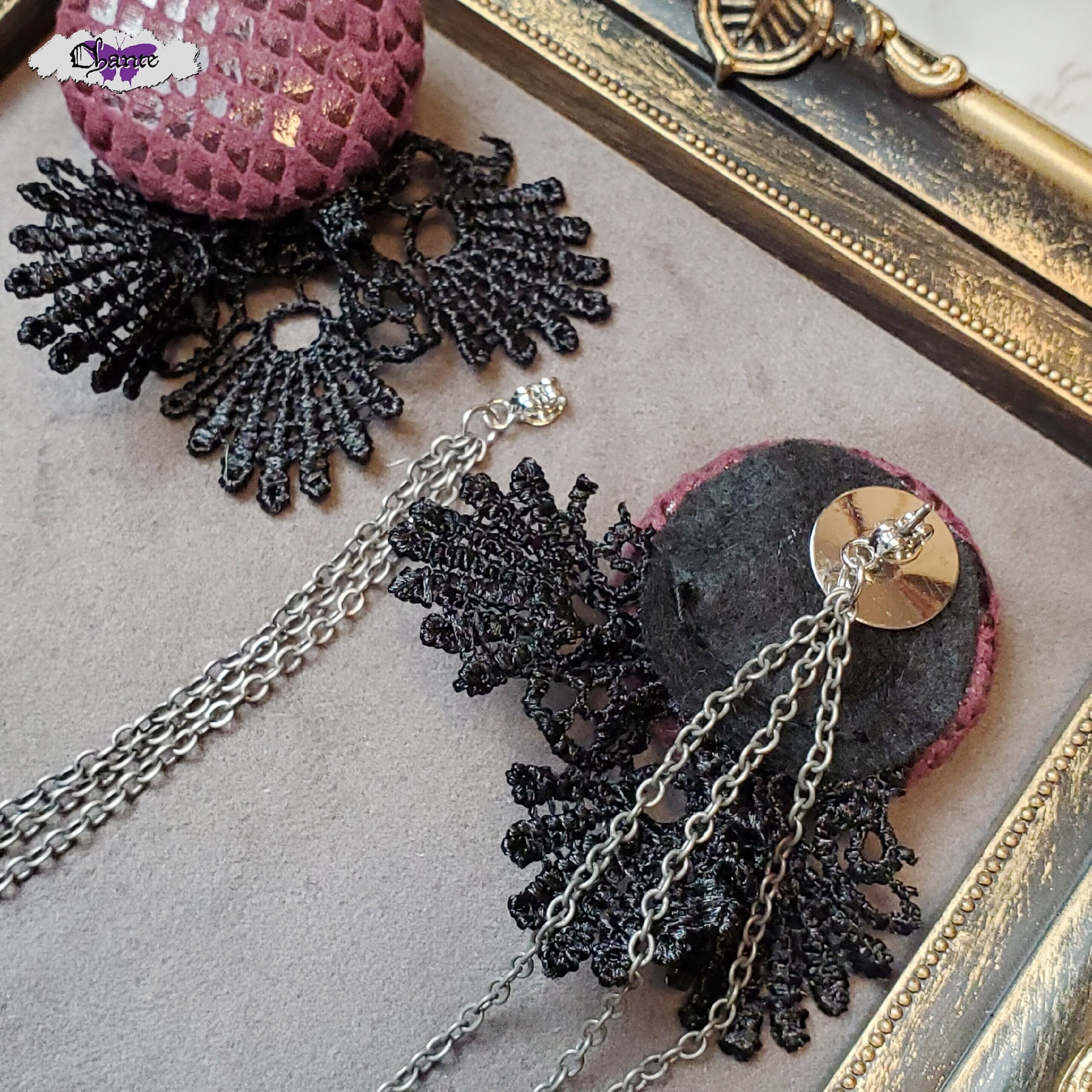 レース&カボションの揺れるゴシックピアス